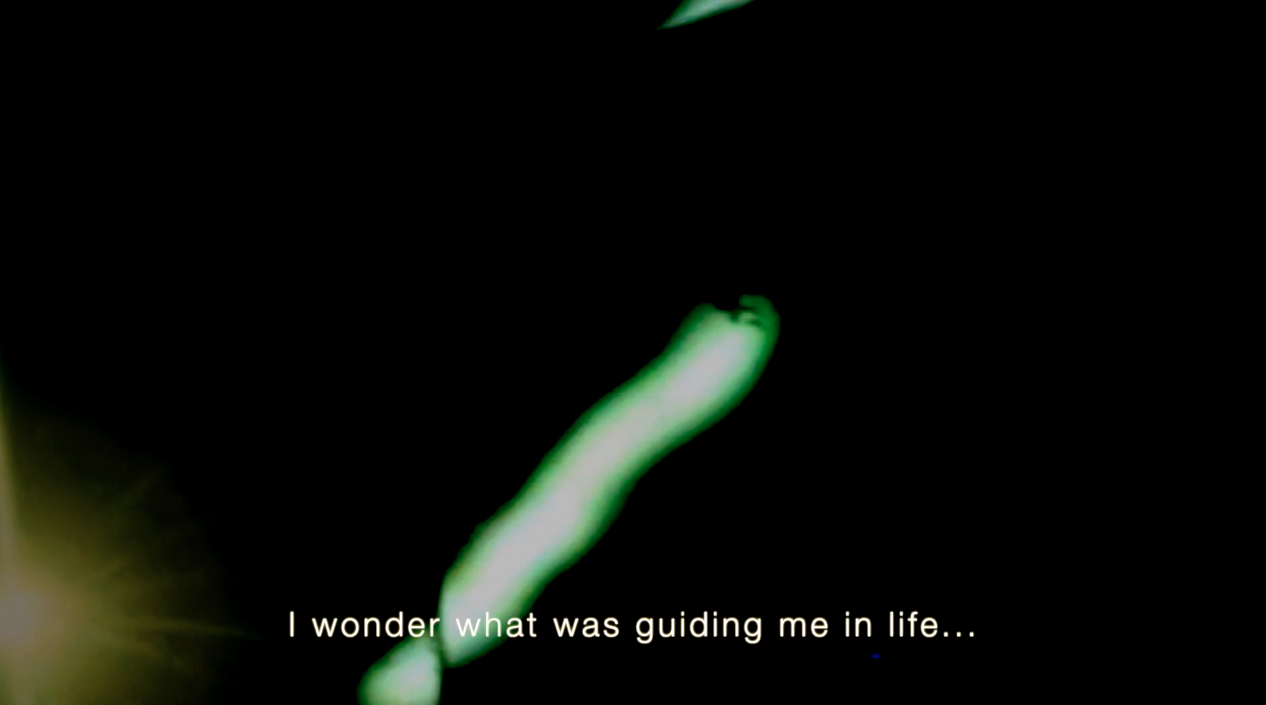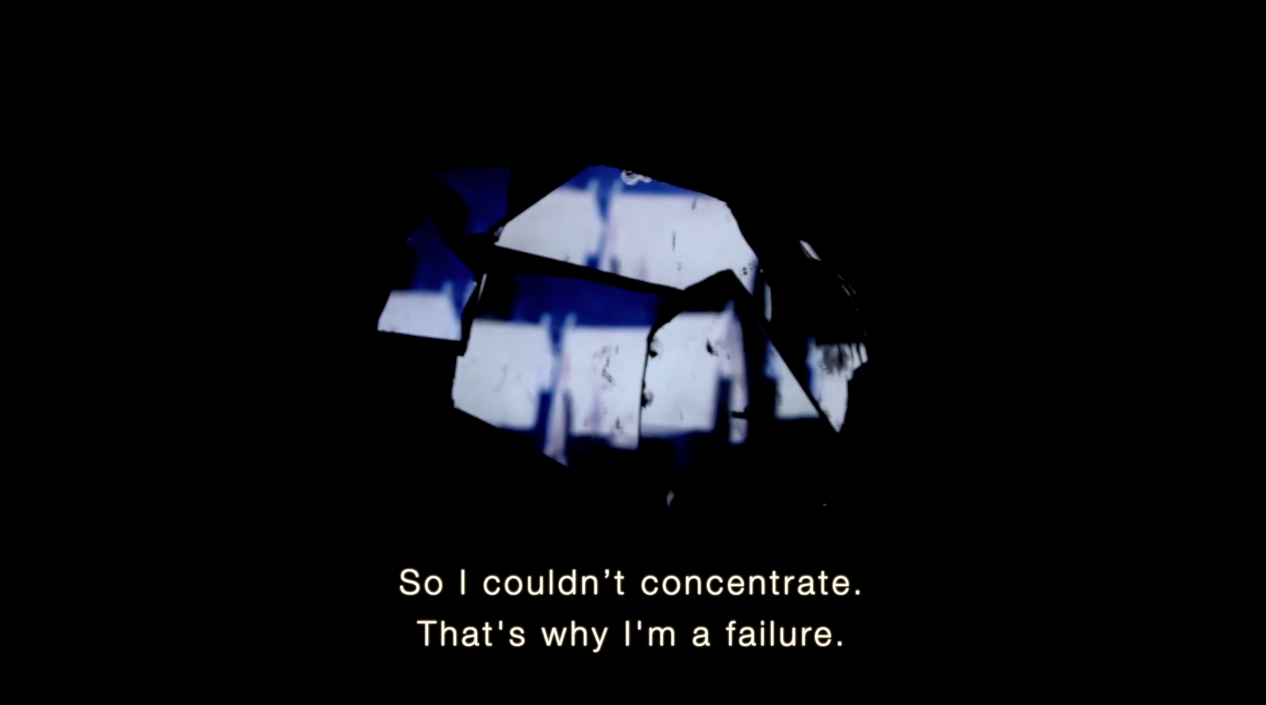 R. recounts his loves, his failures, through images projected onto a broken mirror.